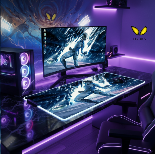 Transformez votre espace en une véritable scène lumineuse grâce à nos 12 effets RGB exclusifs. Chaque couleur est pensée pour sublimer votre setup : du vert éclatant au bleu électrique, du violet profond au rouge incandescent, jusqu’à l’incontournable mode arc-en-ciel pour une ambiance dynamique et spectaculaire. Avec HYDRA, votre bureau devient un univers immersif où chaque nuance intensifie votre expérience. Illuminez vos sessions, affirmez votre style, et laissez votre tapis RGB devenir la signature visuelle de votre environnement